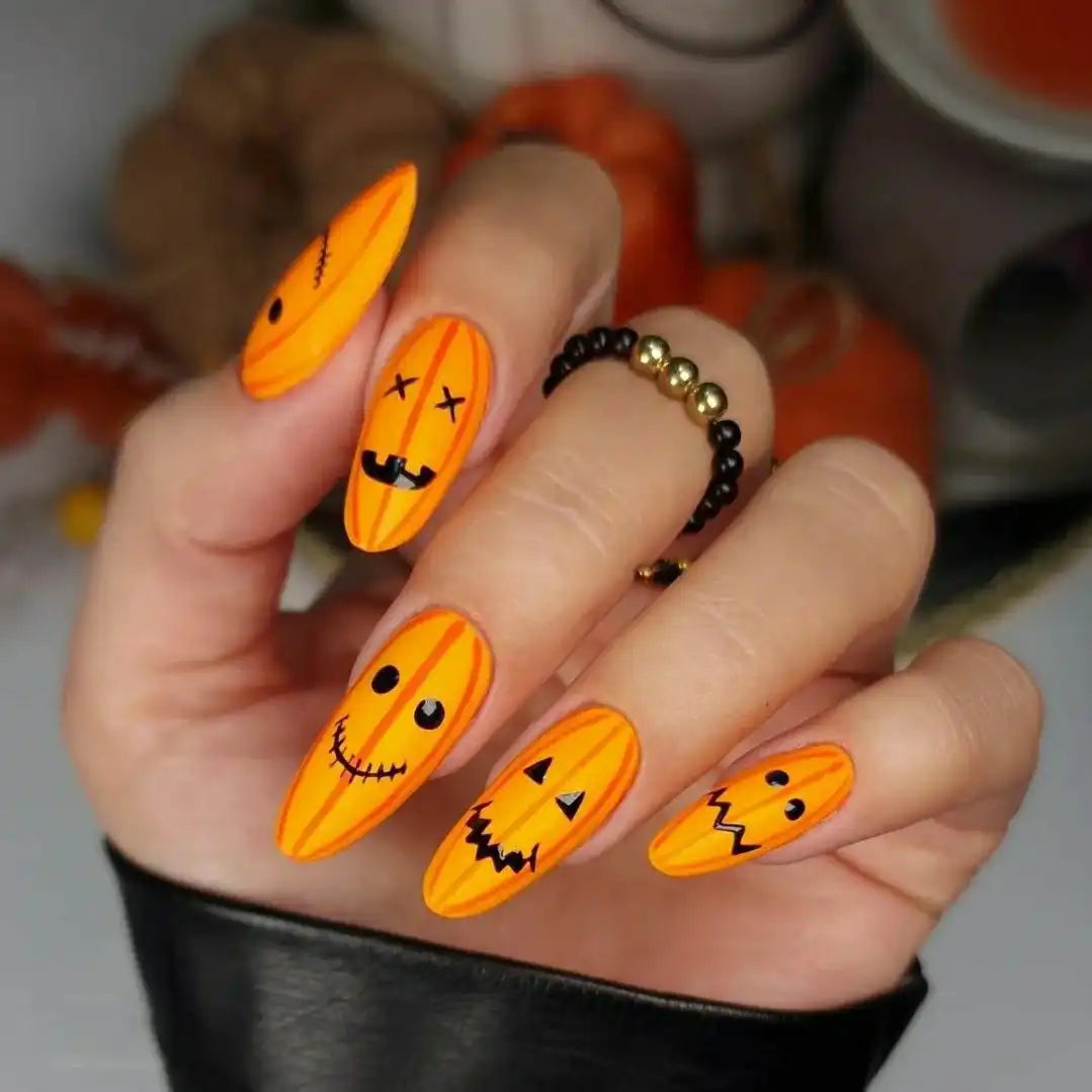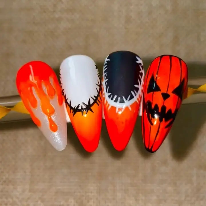 Cute Spooky Jack-o'-lantern Orange Halloween Press on Nails G40