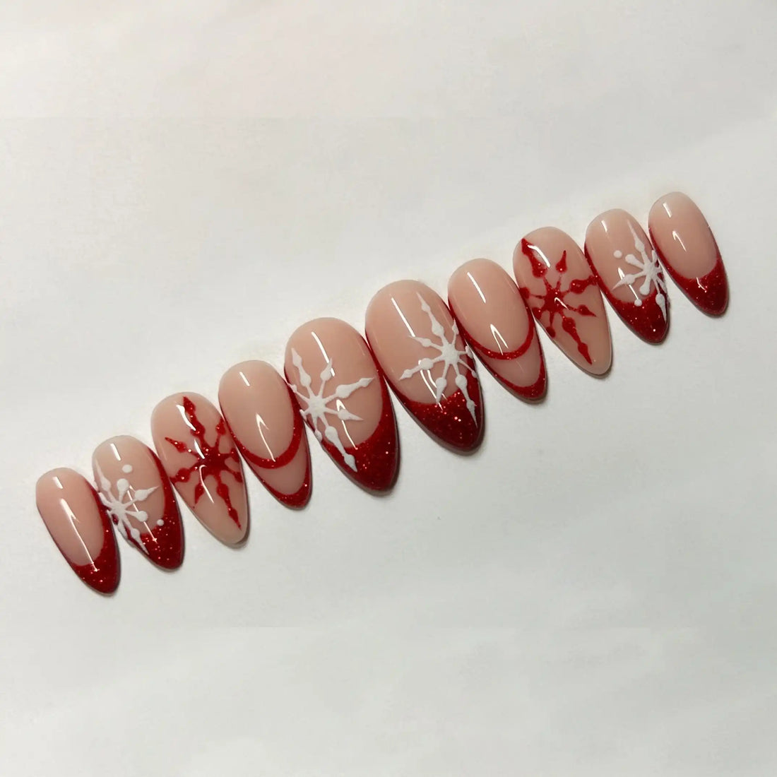 Christmas Red Snowflake French Press on Nails - Holiday Handmade Fake Nails K84