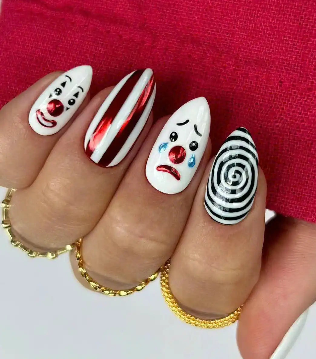 Cute Clown Press on Nails - Halloween Theme Trendy Fingernails F52