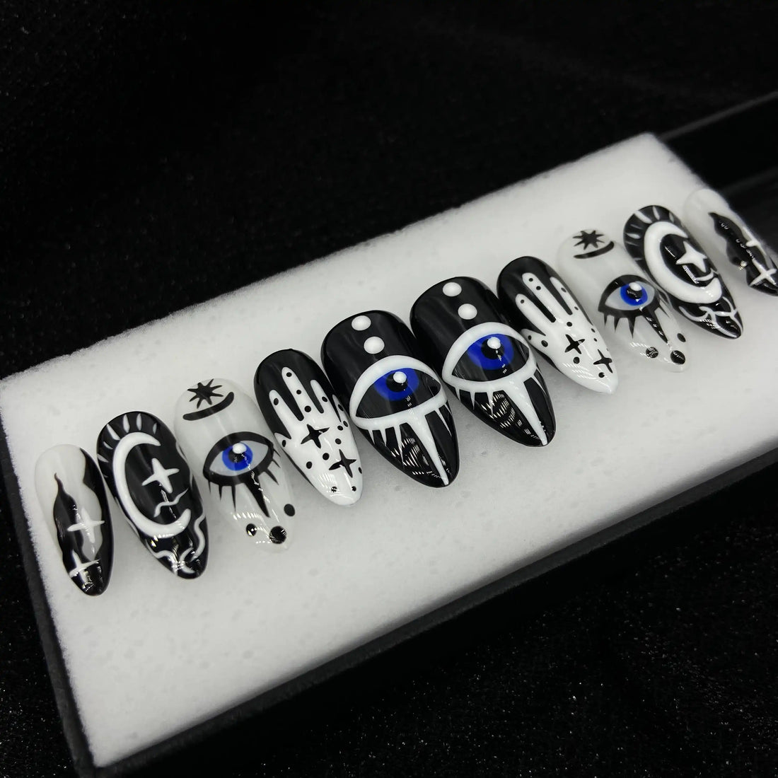 The Blue Abstract Eye Halloween Press on Nails - Handmade Fingernails V59