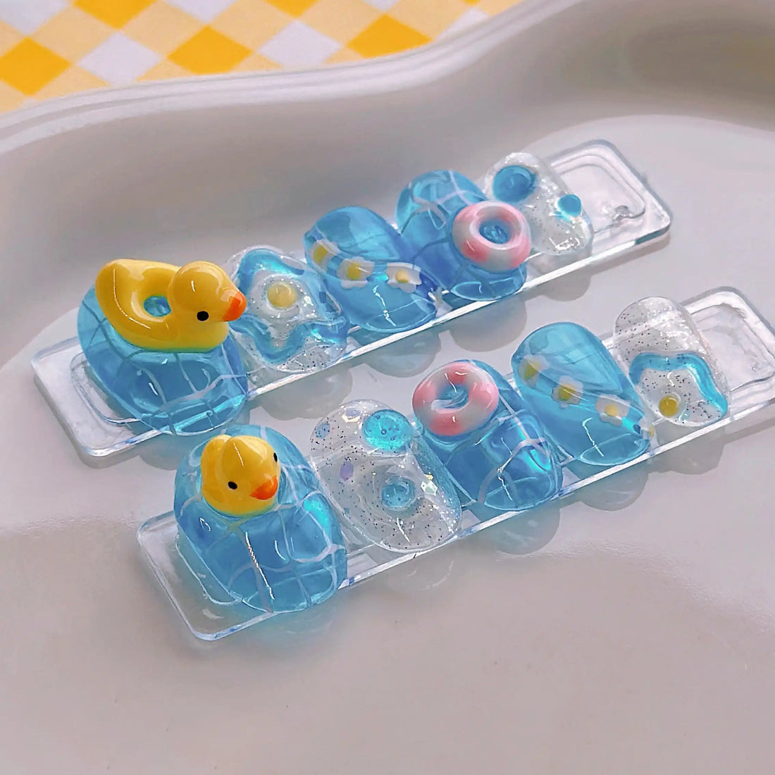 Yellow Duck Handmade Press on Nails - Pool Party Cute Summer 3D Fingernails E98