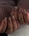 Handmade Romantic Nude Floral Gold Vine Accent Garden Press on Nails G56