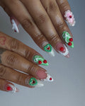 Handmade 3D Cake Design Green Red Heart Bow Kawaii Press on Nails V75