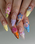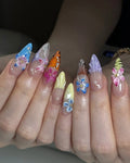 Handmade 3D Floral Multicolored Tiger Print Seashell Summer Fake Nails G38