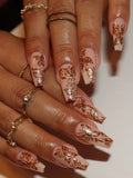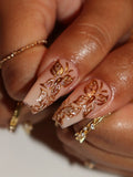 Handmade 3D Gold Chrome Butterfly Floral Nude Luxury Elegance Press on Nails B08