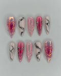 Handmade 3D Pink Chrome Heart Snake Y2K Reusable Press on Nails N12