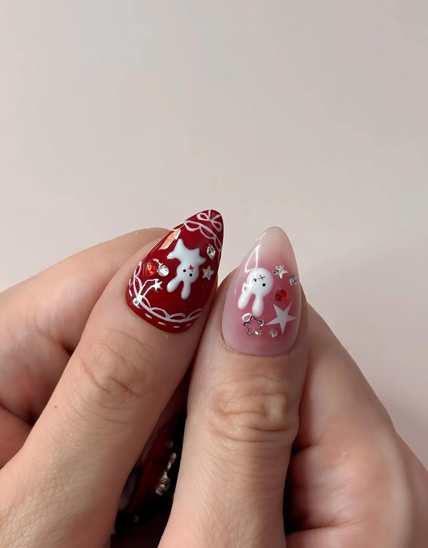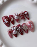 Handmade 3D Red Bunny Bow Star Cute Kawaii Holiday Press on Nails C61
