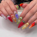 Indulge in this playful set of reusable handmade fingernails. Featuring realistic 3D fruit slices and vibrant colors like watermelon, dragon fruit, and lemon, these cheerful customizable designs are perfect for summer parties, tropical trips, or any event or daily wear. They maintain a brilliant glossy finish. Available in shapes like Coffin, Oval, or Stiletto. Squeeze some zest into your life and buy this unique set today