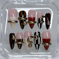 Handmade Abstract Designer Gold Ring Fall Fashion Press on Nails N35