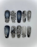 Handmade Black Smoke Gray Chrome Cross Gothic Punk Press on Nails S65