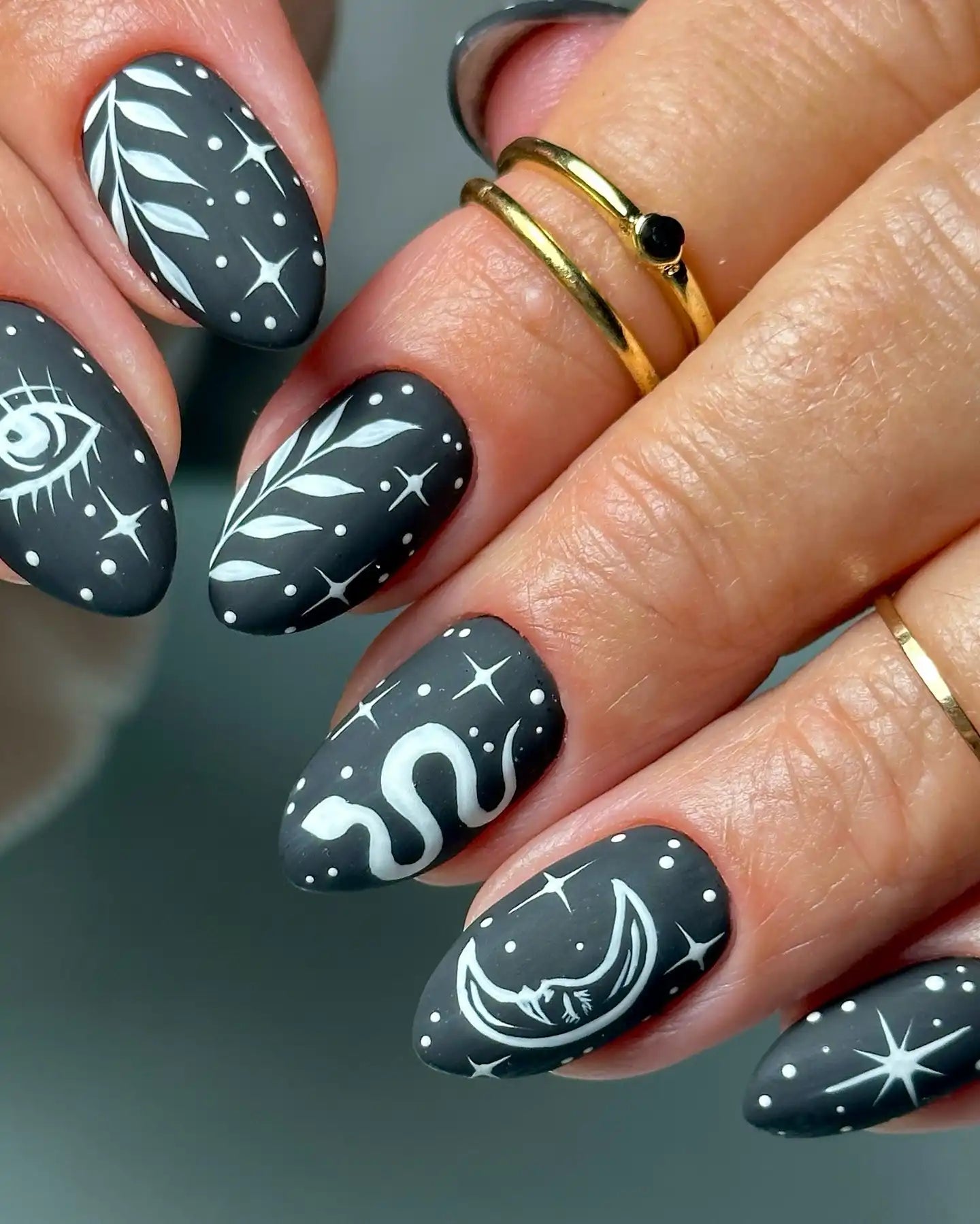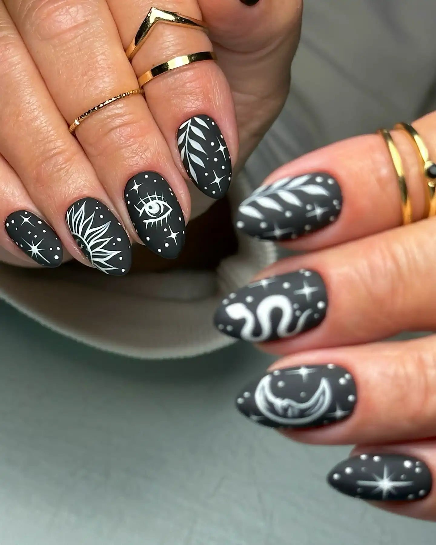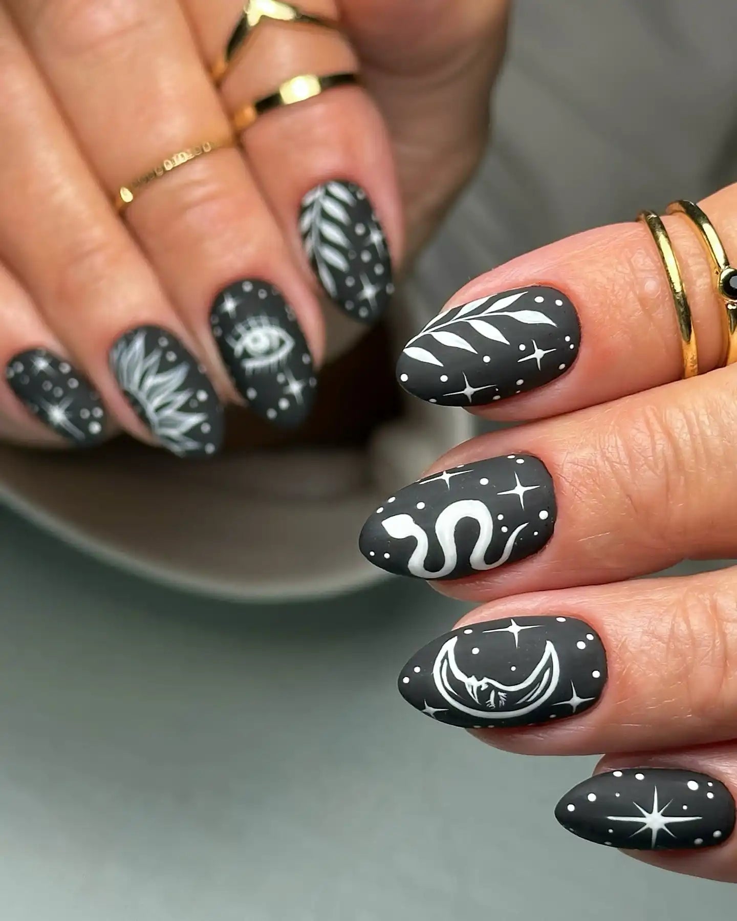 Handmade Celestial Moon Sun Eye Snake Black Matte Witch Press on Nails O91