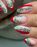 Handmade Christmas Holly Berries Red Green Press on Nails - Glitter Festive H33