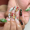 Celebrate the season with these cheerful handmade press-on nails! They feature adorable gingerbread cookies, festive holly, classic plaid, and 3D wreath accents. Reusable and customizable, these unique fingernails are perfect for Christmas parties or adding holiday cheer to daily wear. Available in various shapes and lengths and a glossy finish. Get your festive set now!