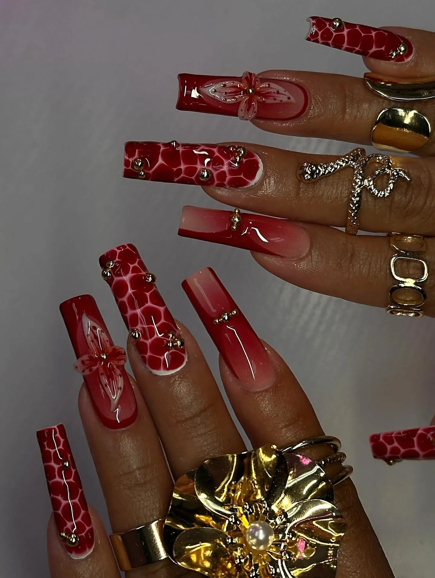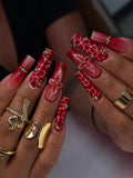 Make a powerful statement with these handmade press-on nails. This striking set features a glossy finish, vibrant red tones, and unique crocodile-inspired patterns, making them incredibly special. They are reusable and offer customizable designs in shapes like Coffin or Square, and lengths like Medium or Long. Perfect for a holiday party or any event or daily wear. Add this unforgettable set of fingernails to your cart now!