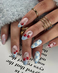 Handmade Cute Red Cherry Blue Picnic Press on Nails H42