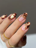 Handmade Floral Gold Glitter French Tip Autumn Wedding Press on Nails B40
