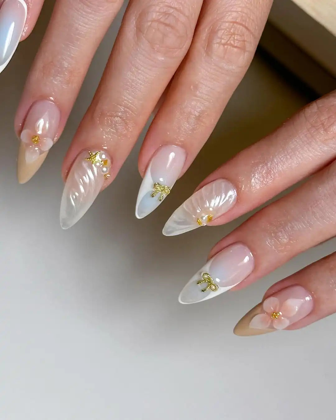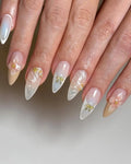 Elevate your elegance with Handmade Florals White French Tip with Gold Press-on Nails! These reusable fingernails dazzle with crisp white French tips, delicate florals, and shimmering gold accents, sealed in a glossy finish. Perfect for summer romantics and beach lovers, they’re easy to apply and long-lasting. Choose Short, Medium, or Long in Almond, Coffin, Oval, Square, or Stiletto shapes. Ideal for weddings, brunches, or daily wear, their customizable designs enchant.