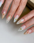 Handmade Florals White French Tip with Gold Press on Nails W61
