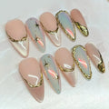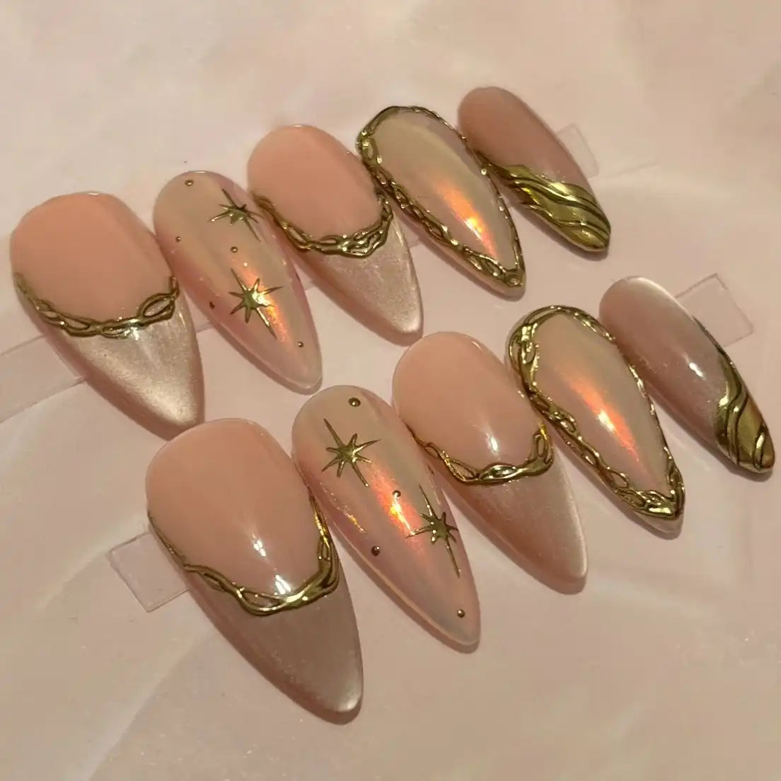 Handmade Gold Chain Celestial Nude Pink Galaxy Press on Nails M83