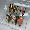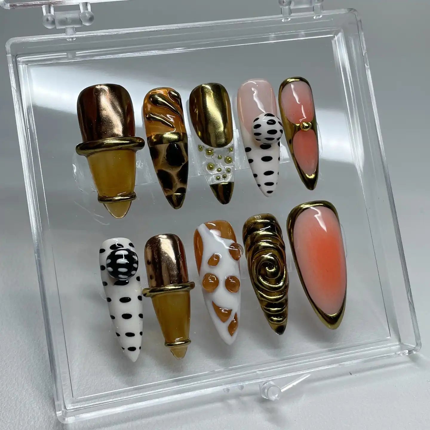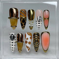 Handmade Gold Chrome Abstract Polka Dot Giraffe Swirl Art Press on Nails F09