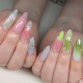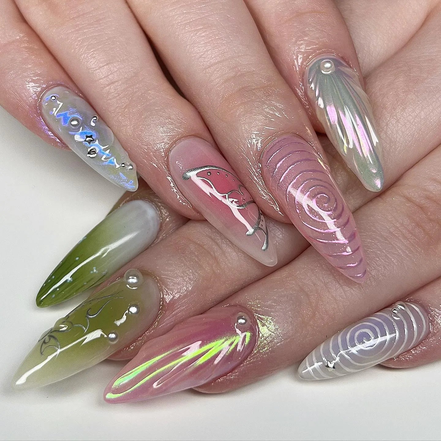 Handmade Iridescent Pastel Chrome Swirl Pearl Aura Press on Nails N29