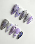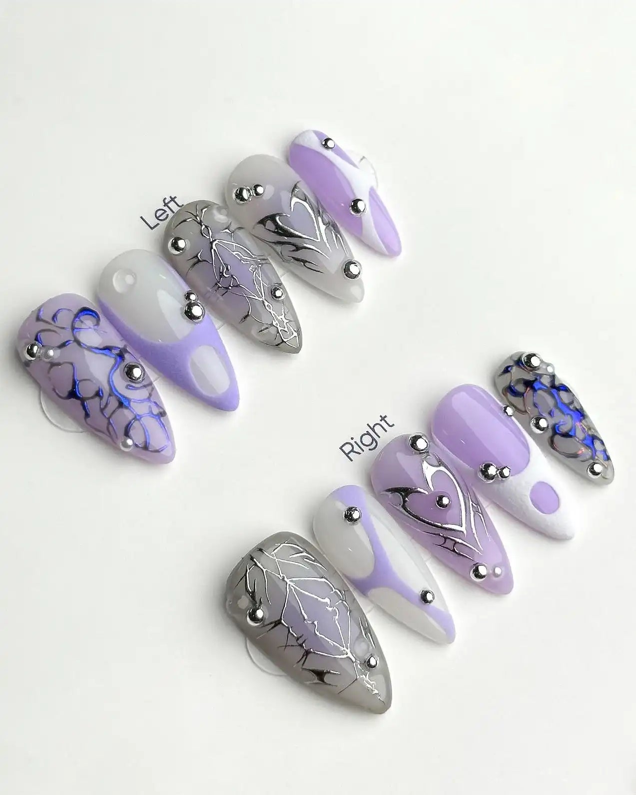 Handmade Lavender Gray Chrome Abstract Heart Y2K Press on Nails R88