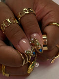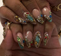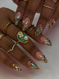 Handmade Luxurious Jewel Gemstone Gold Pearl Multi-Color Press on Nails U01