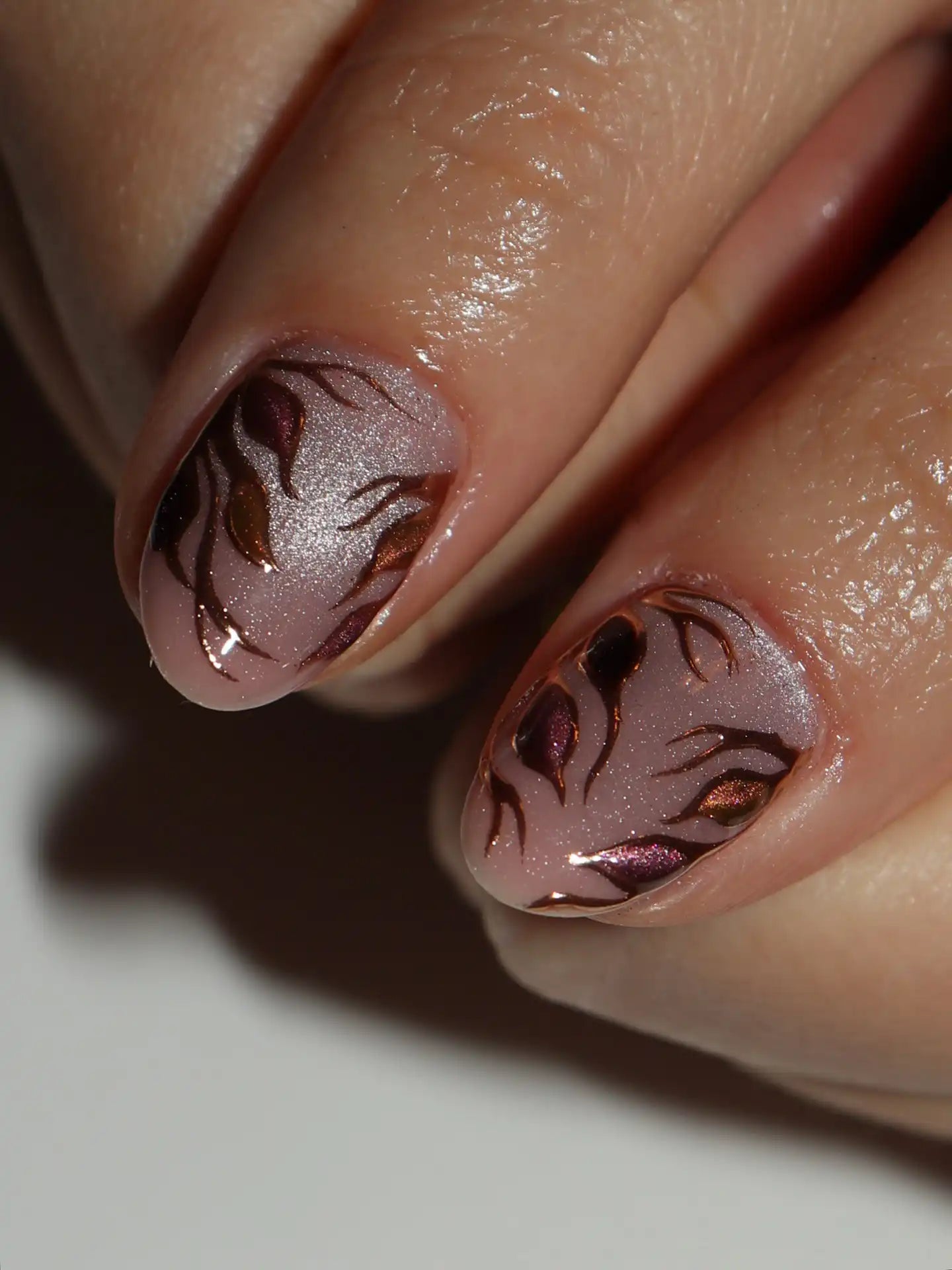 Handmade Mauve Chrome Metallic Leaf Autumn Artistic Luxury Press on Nails T59
