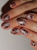 Step into sophistication with these exquisite handmade press-on nails, offering customizable designs and a high-shine finish. They are reusable and perfect for the fall season, galas, or any event or daily wear. Anyone who loves subtle sparkle and intricate, metallic leaf patterns will adore the luxurious chrome accents. Your fingernails will look effortlessly elegant! Available in Short, Medium, or Long sizes and shapes like Almond, Coffin, Stiletto, or Oval. Indulge in luxury—add this breathtaking set to your collection!