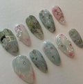 Bring the tranquility of a garden pond to your fingernails with these exquisite handmade press on nails, featuring floral pond art, delicate pearls, and a charming black cat accent. These reusable designs offer customizable designs and a beautiful high-shine finish, perfect for any event or daily wear. They come in many shapes and lengths, including Medium, Coffin, or Almond. Ideal for nature lovers, cat enthusiasts, or anyone who loves soft, impressionistic style. Adorn your hands with this truly unique and enchanting set today!