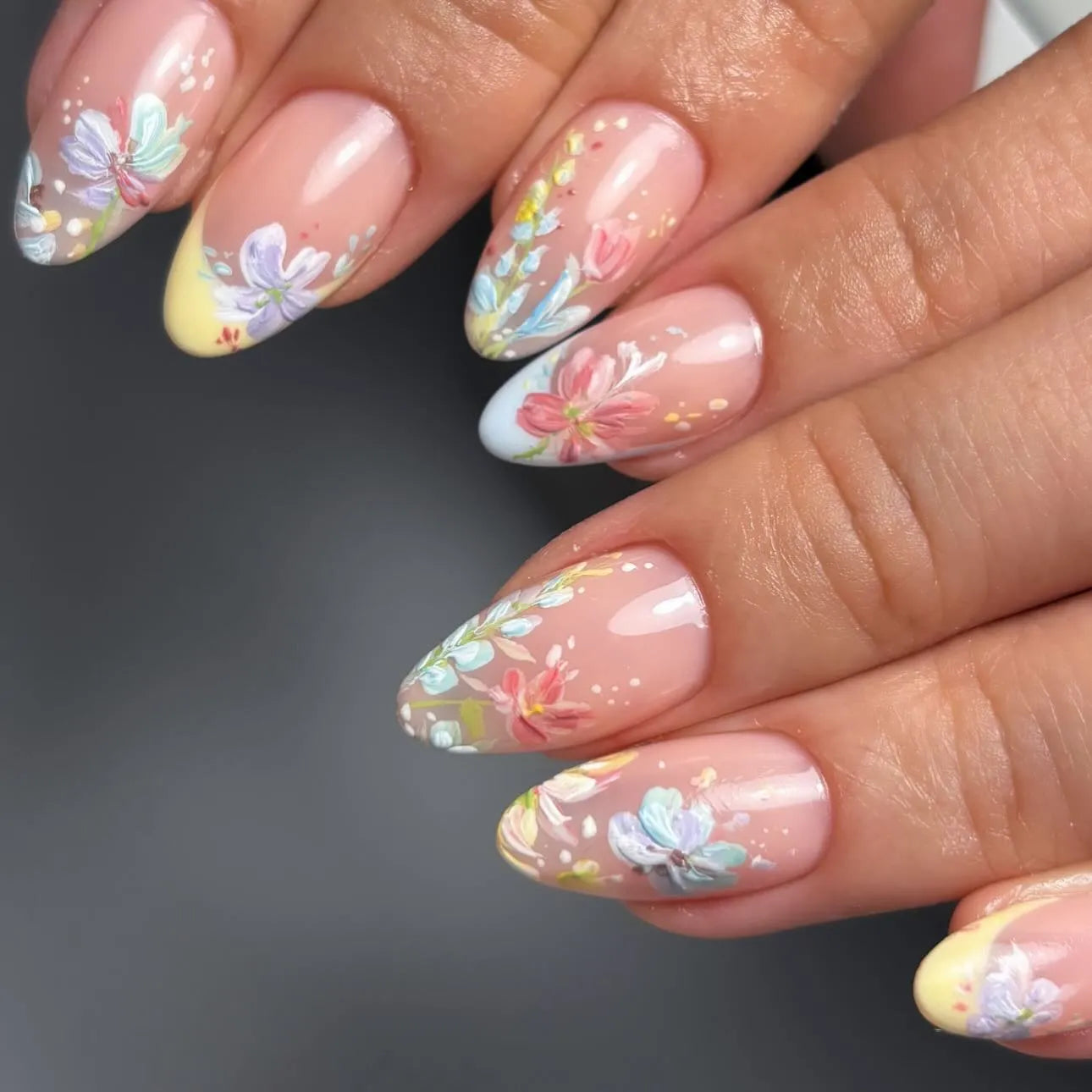 Handmade Pastel Floral French Spring Watercolor Garden Press on Nails M58
