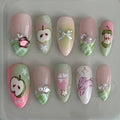 Handmade Pastel Pink Green Rabbit Apple Press on Nails K77