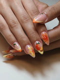 Handmade Peach Fruit 3D Floral Orange French Tip Artistic Press on Nails R40