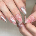 Handmade Pink Chrome Bunny Bow Heart Cute Iridescent Kawaii Press on Nails M23