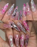 Handmade Pink Chrome Scrollwork Silver Rhinestone Abstract Press on Nails S04
