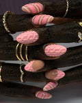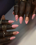 These handmade press-on nails feature cozy 3D pink sweater textures paired with glossy glitter-striped accents, bringing a perfect blend of warmth and glam. Ideal for the fall and winter seasons, they’re soft, feminine, and festive. Reusable and customizable in various shapes and lengths, these nails offer a cute, salon-quality look for any event or daily wear. Get your set today and wrap your fingertips in sweet, stylish comfort!