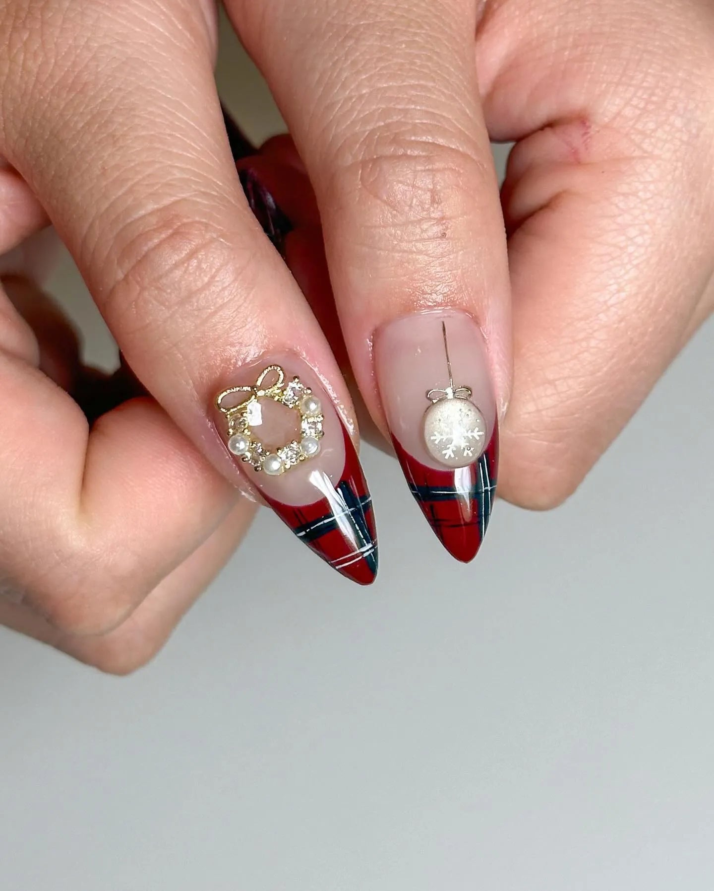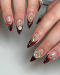 Adorn your fingernails with these sophisticated Handmade reusable press-ons! Featuring classic red plaid, charming gold accents, pearls, and delicate cherries, these customizable designs boast a stunning glossy finish. Perfect for any event or daily wear during the holiday season, they come in diverse lengths and shapes like Short, Medium, Long, Stiletto, or Coffin. Command attention with festive flair! Purchase your set now!