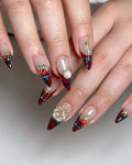 Handmade Red Green Gold Charm Cherry Pearl Christmas Press on Nails Q02