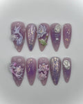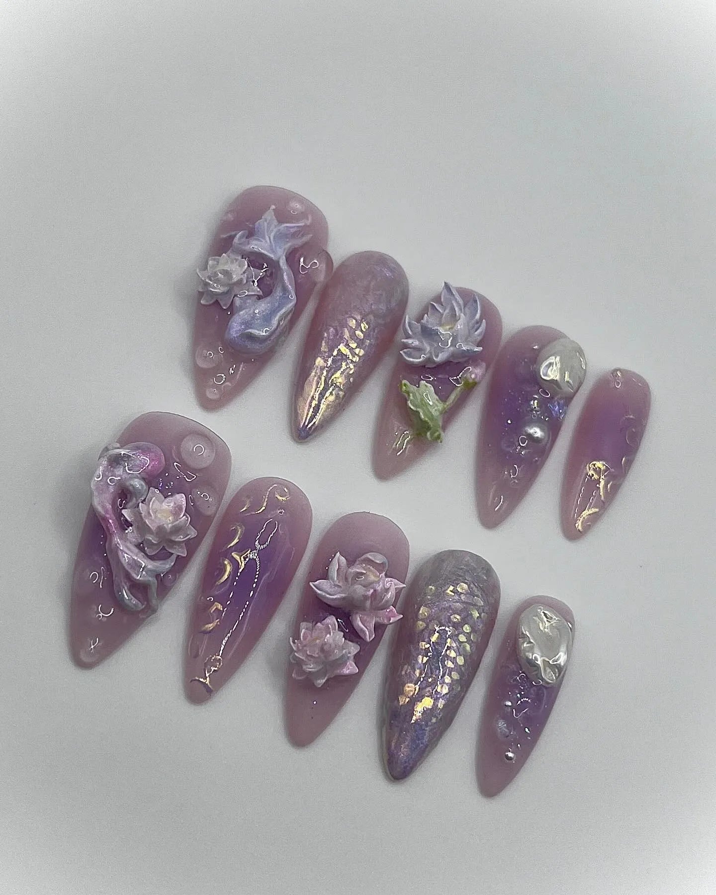 Handmade Purple Mermaid Lotus Flower 3D Fantasy Press on Nails A94
