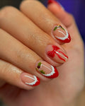 Handmade Red French Tip Bow Holly Christmas Press on Nails G89