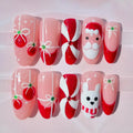 Handmade Santa Bunny Candy Cane Red Christmas Press on Nails S14