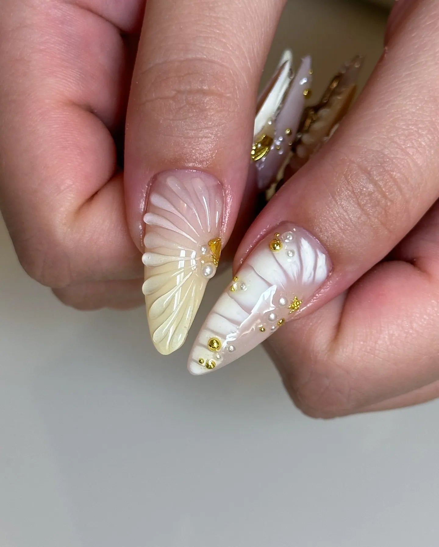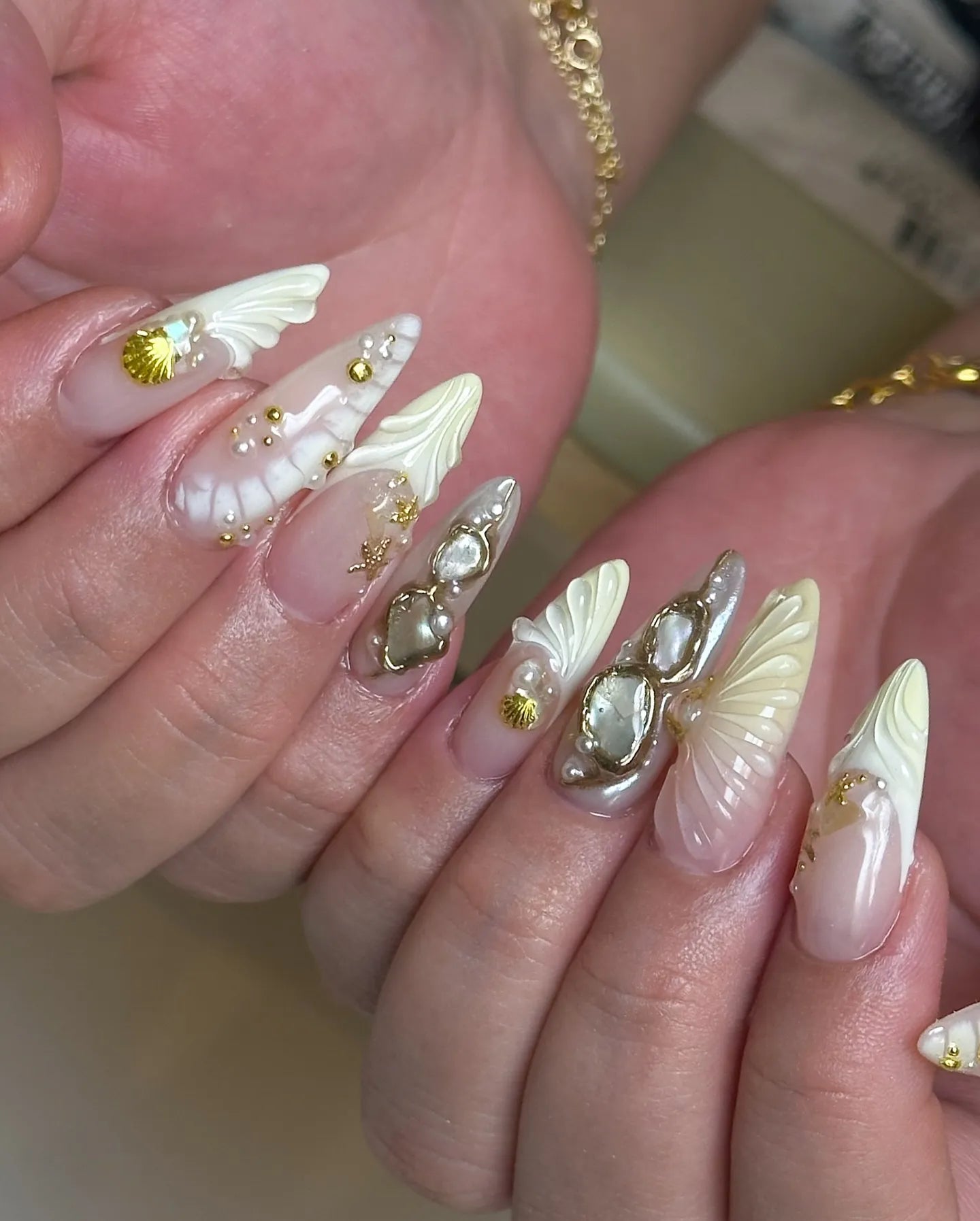 Handmade Sea Shell Pearl Ocean Summer Press on Nails Z12