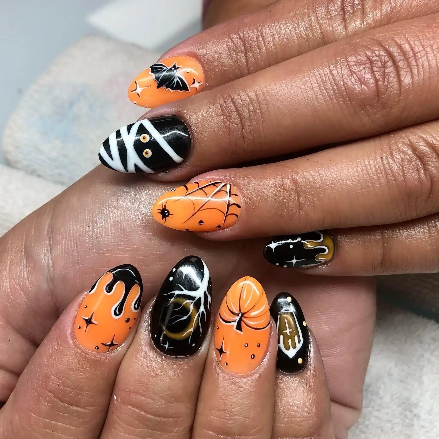 Handmade Spooky Mummy Bat Pumpkin Orange Black Halloween Press on Nails F22