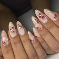 Indulge in charm with these delightful handmade press-on nails, offering customizable designs and a high-shine finish. They are reusable and perfect for picnics, spring events, or any event or daily wear. Anyone who loves whimsical, feminine, and subtly sweet aesthetics will adore these adorable strawberry and lace accents. Your fingernails will look irresistibly charming! Available in Short, Medium, or Long sizes and shapes like Almond, Coffin, Oval, Square, or Stiletto. Savor the sweetness—get this enchanting set today!