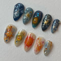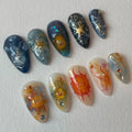 Handmade Studio Ghibli Sun Celestial Galaxy Blue Orange Fire Press on Nails G16