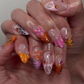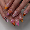 Show your wild side with these eye-catching reusable handmade fingernails. Combining bold tiger stripes, pink leopard print, and vibrant 3D florals, these unique customizable designs are perfect for themed parties, festivals, or any event or daily wear. They boast a beautiful glossy finish. Available in shapes like Almond, Coffin, or Stiletto. Pounce on this fiercely fashionable set and order now