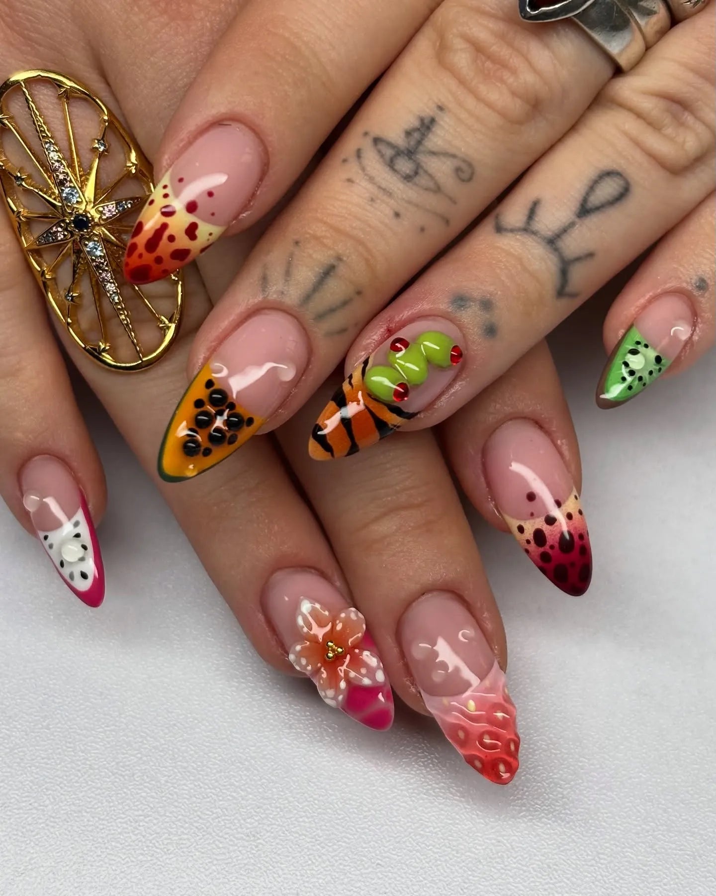 Handmade Tropical Fruit 3D Flower Mismatched Summer Press on Nails B94