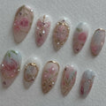 Wrap your hands in romance with these elegant Handmade reusable press-on nails. Featuring customizable designs and available in lengths and shapes like Coffin, Stiletto, or Medium, these are perfect for an anniversary dinner, tea party, or any event or daily wear. Don't miss out—purchase this luxurious romantic set now!