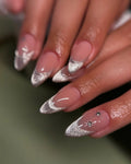 Handmade White Cat Eye and Silver Glitter French Tip Press on Nails B68