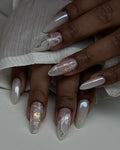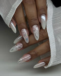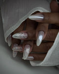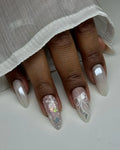 Adorn your fingernails with these exquisite Handmade reusable press-ons! Featuring iridescent pearl shimmer, delicate silver snowflakes, bows, and white accents, these customizable designs boast a luxurious glossy finish. They are perfect for any event or daily wear throughout the winter season. Available in various lengths and shapes like Short, Medium, Long, Coffin, or Almond. Embrace winter elegance! Order your set now!